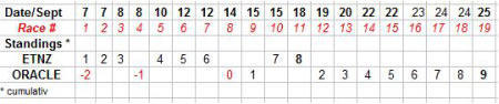 New standing 8:5 ETNZ needs 1 point, Oracle still 4 to victory. Without the minus 2 points from the AC45 World Series, it would be