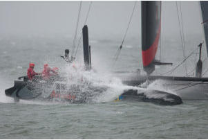 These photos show ETNZ’s AC 45 in the violent storms of Plymouth