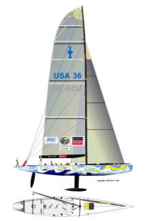 Young America (Mermaid) USA 36 lost as a defender the America's Cup in 1995