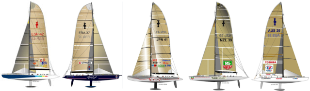 Four syndicates (Nippon Challenge, Team NZL, France 95, OneAustralia) gave each 2 boats in order, the