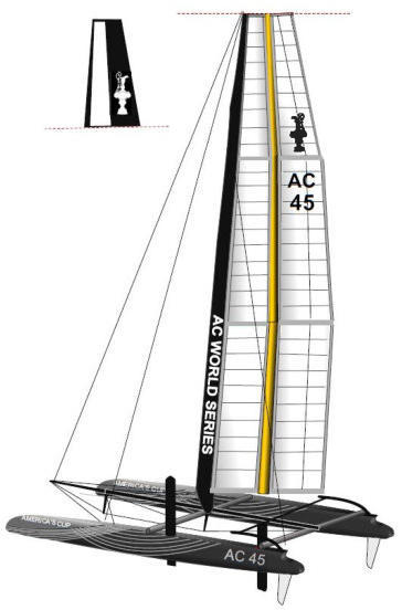 a smaller high-tec catamaran with a far lighter handling. The AC45 catamaran will be sailed in two