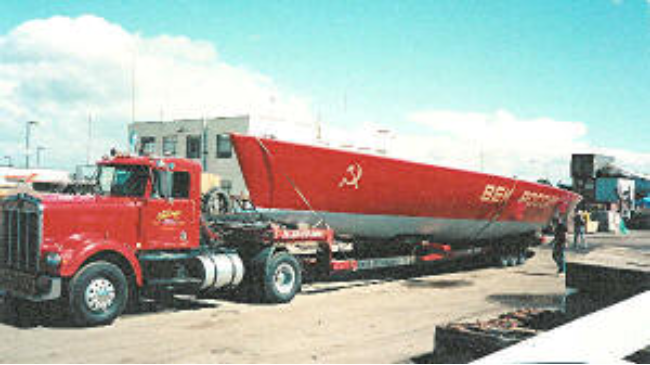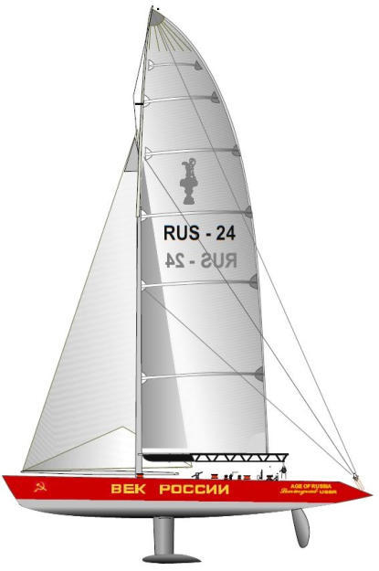 'AGE OF RUSSIA', a Russian syndicate entry for the 1992 America's Cup challenge, was flown in to