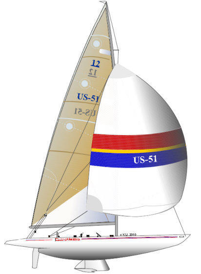 Francisco Bay. In the meantime Gary Mull designed the USA-R1, sail-number 12 USA 61, the yacht with the slim keel-fin,
