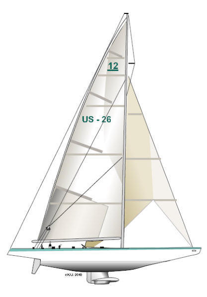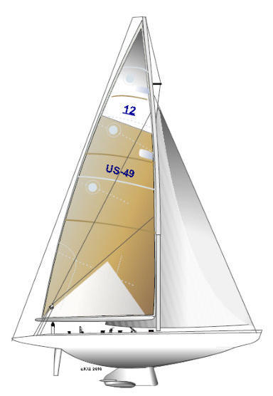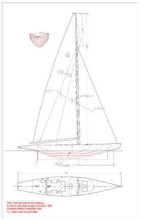 a winged keel (below) and a more detailed history of this 12 m yacht. The small plan, traces Gary