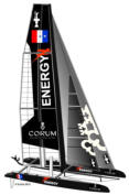 Der Defender Oracle Raciong setzte 2 Katamarane mit den Namen ihrer Skipper ein:
