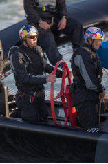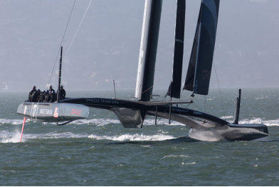 das „foiling“ .Die ersten Tests auf dem Wasser mit einem AC72 fanden im September