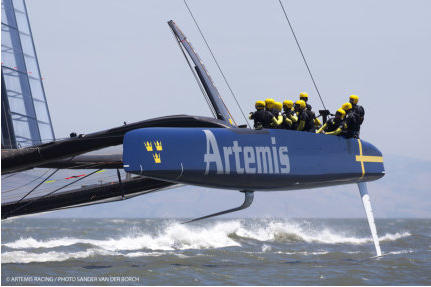 Der Ac72 ist optimal getrimmt, Segelmanöver